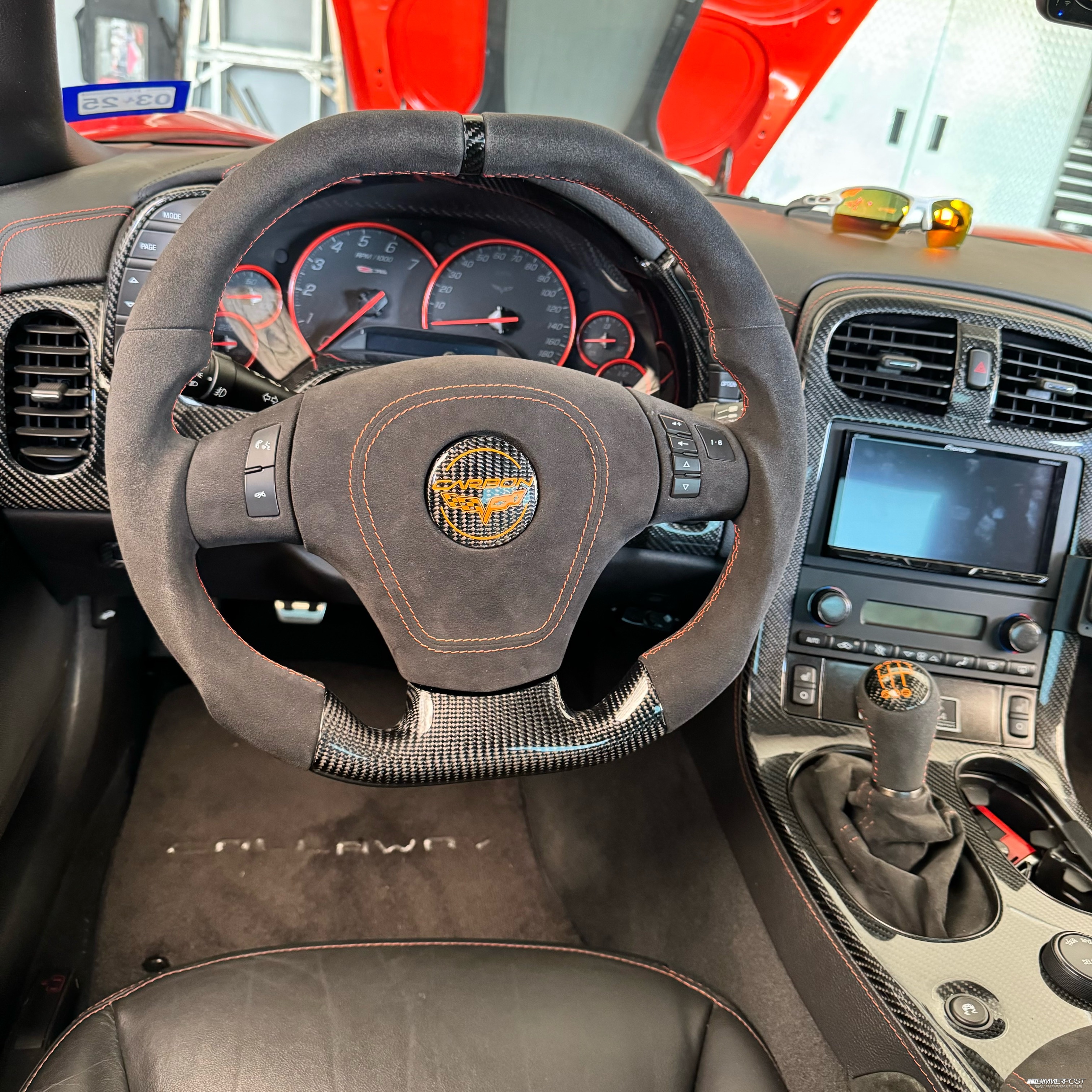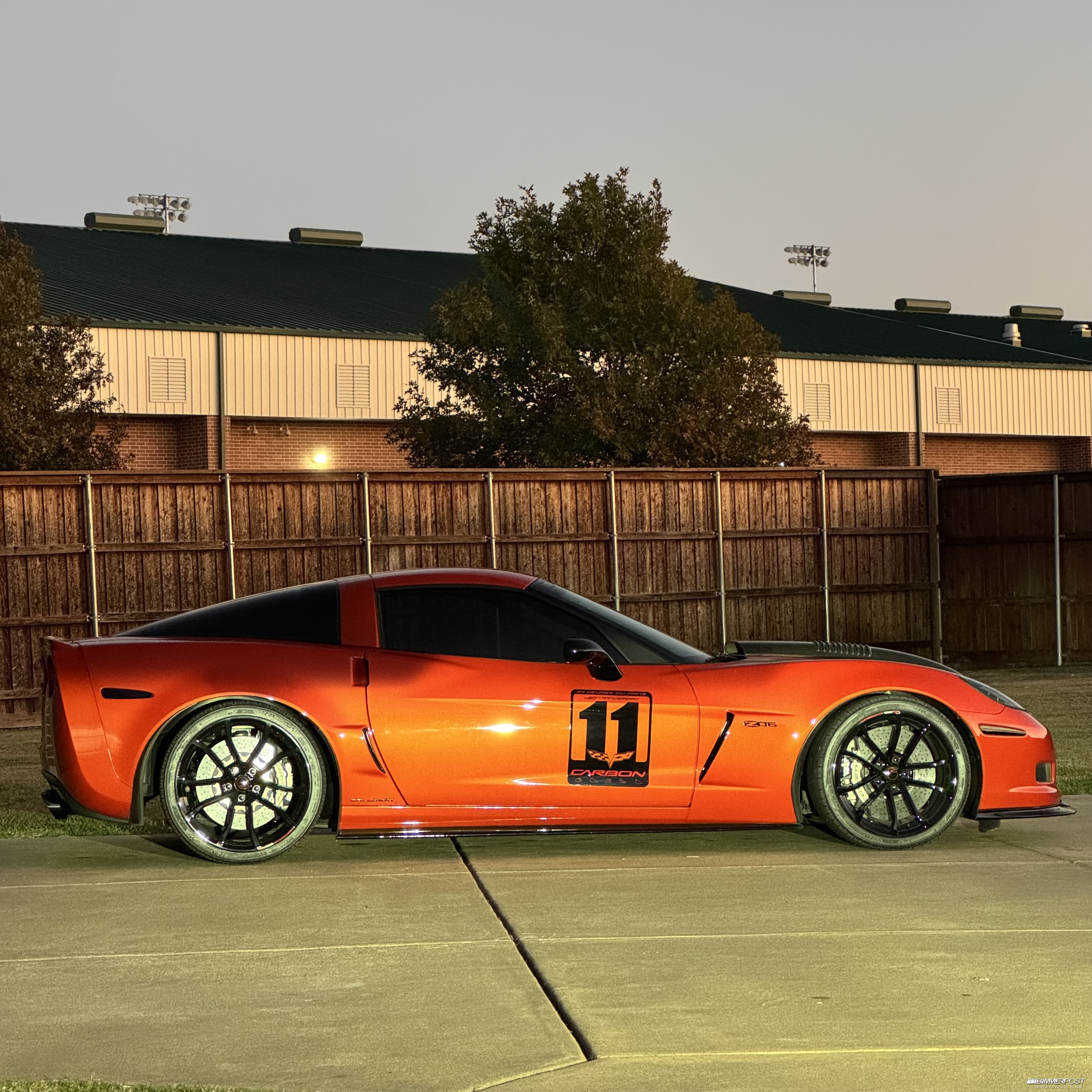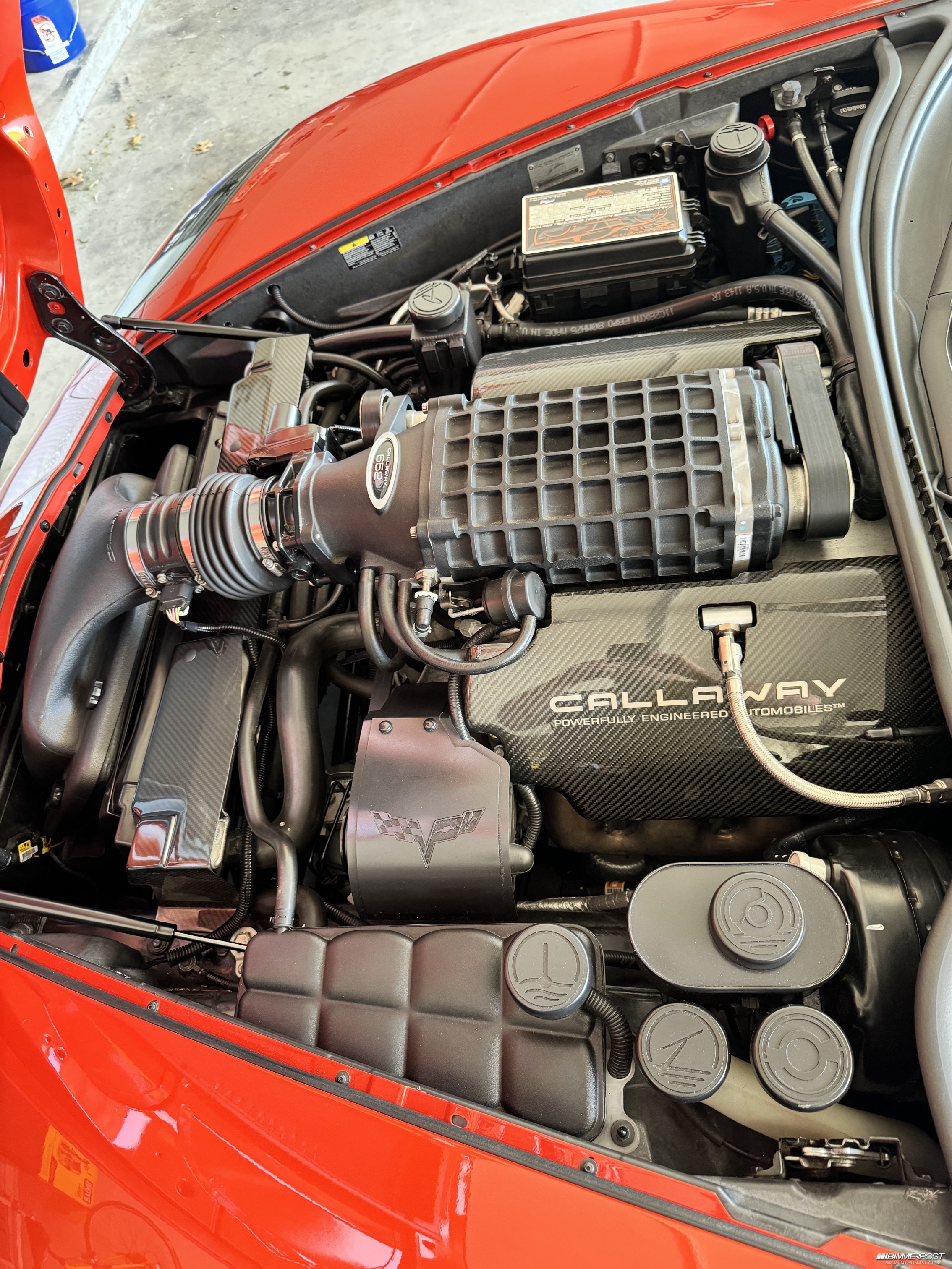 (Current) Morimoto C7-style led headlights; Morimoto tinted led tail lights; tinted led side markers; Carbon Fiber engine covers; Carbon Fiber radiator cover; Painted alternator cover & fluid cap covers; Black Callaway emblems; Customized black & inferno orange Corvette cross-flag emblems. Xpel ppf full front, full hood, mirrors.