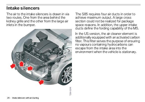 I read somewhere that the M6 has a plate, the M5 has a snorkle... not sure why they have different airbox internal pieces blocking that but thats been the trend.