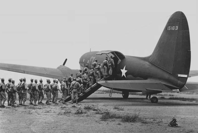 The Douglas DC-4 (USAAF C-54 or R5D) was a big step up from Douglas' twins, with four engines and greater payload, range and speed. While early design was civil-oriented, the C-54 Skymaster first flew in 1942 and the vast majority of aircraft -- over 1,000 -- were built for the services. Like the C-47, after the war, surplus aircraft were used by the airlines as DC-4s, and Douglas built 79 commercial DC-4s postwar as well. The C-54 holds the distinction of being the first aircraft used for transport of the U.S. president. The standout period for the C-54 was the Berlin Airlift in 1948-49 when the Soviets cut off surface transport routes to West Berlin. Allied aircraft began a prodigious effort to supply the city with food and fuel. https://en.wikipedia.org/wiki/Douglas_C-54_Skymaster https://en.wikipedia.org/wiki/Douglas_DC-4 The Curtiss C-46 Commando (manufacturer's designation CW-20) first flew in 1941. It was a larger twin-engine aircraft than the C-47 using more powerful Pratt & Whitney R-2800 engines. Over 3,000 C-46s were built, including some R5Cs for the Marine Corps. The C-46's claim to fame came with the air supply of critical cargo to Nationalist China over the Himalayas. The C-46 had better performance for the arduous flights over "The Hump" as it was called. Postwar, the C-46 was not as successful as the DC-4, as running costs were mostly deemed too expensive for commercial use. https://en.wikipedia.org/wiki/Curtiss_C-46_Commando Like the smaller DC-3 and C-47, these transports/airliners were mostly retired by the 1970s.