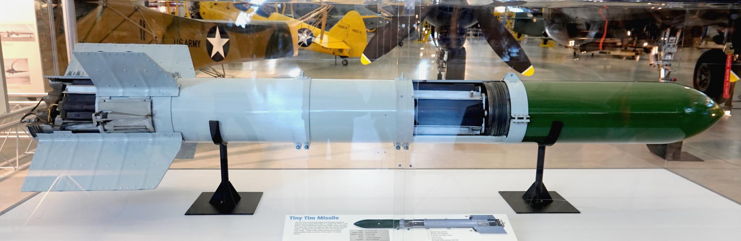 As far as I know, aerial rockets initially came into use to attack German submarines in 1942-43. The initial model was a 3.5-inch diameter rocket that was fired from a rail on the TBF/TBM Avenger torpedo bomber flown from escort carriers in the Atlantic. Use soon spread as well to the Pacific. The 3.5-inch rocket was considered to lack enough explosive punch and a revised "5-inch" rocket with a larger warhead, but the same rocket motor, soon was used. That was supplanted by a rocket with a larger motor that was 5 inches in diameter over the entire length called the high-velocity aerial rocket (HVAR). The ultimate WW2 rocket was a Navy project called the Tiny Tim. This was an 11.75" diameter rocket that was effective against bunkers and the like in the Pacific late in the war. The rocket motor damaged the launching aircraft when launched, and so a lanyard was added: the rocket was dropped and the motor ignited several feet below the launching rack. In the 1950s, air-to-air rockets came into vogue. The ultimate rocket-firing fighter was probably the Northrop F-89D Scorpion, which carried 104 2.75-inch folding-fin rockets in wingtip pods. The 2.75-inch folding fin rocket could also be fired from a pod with either 7 or 19 rockets. Ultimately the air-to-air rocket fell out of favor due to poor accuracy and the availability of air-to-air guided missiles. From the 1960s, the same rocket pods were used on helicopters to great effect. A nuclear-tipped rocket armed USAF interceptors for some years. The Genie was unguided but of course lethal to bomber formations with its nuclear warhead. The ultimate rocket was the Zuni, which was similar to the 2.75 but enlarged to 5-inch diameter. It was normally fired from a pod with four rockets; the larger motor gave it speed of over twice the speed of sound. A more recent development is a new-generation 2.75-inch rocket, the Hydra-70 and some of those can be laser-guided for much improved accuracy. Generally 2.75s are used on helos and high-performance aircraft no longer use rockets.
