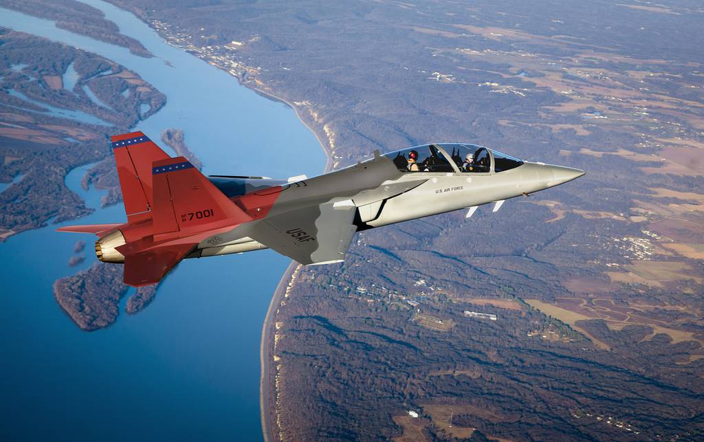 Meet the U.S. Air Force's new advanced trainer: The Boeing-SAAB T-7A Red Hawk. The first prototype flew in 2016 and the aircraft was selected by the Air Force in 2018 to replace the aging T-38. The initial goal is procurement of 351 T-7As. Boeing-SAAB hope for plenty more sales, of course.
