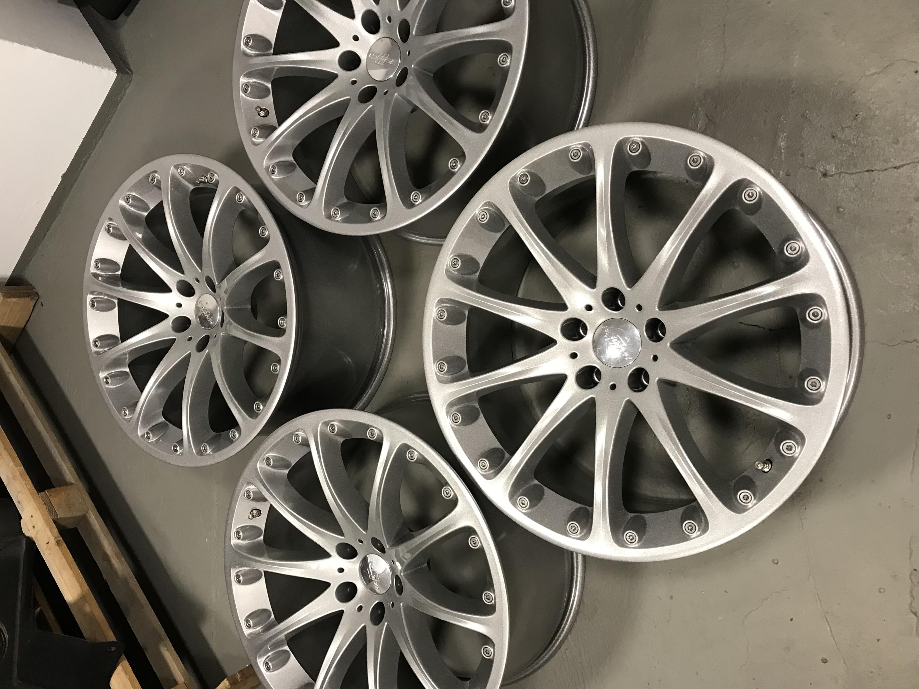 Up for sale HARTGE rims 9.5x21 ET18 + 10.5x21 ET22. Rims after a complex restoration in perfect condition. Two rims were welded (not due to an accident but due driving with too low air pressure). The repair was done very professionally and has no effect on the handling characteristics of the rims. Feel free to contact me if you have any questions. |